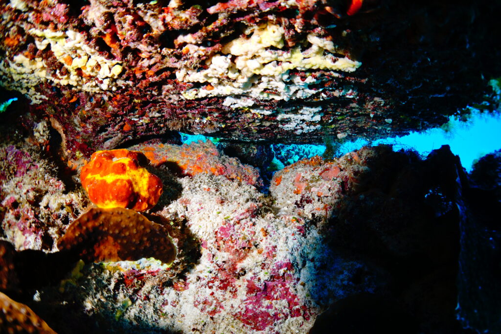スカシテンジクダイ、キンメモドキ、キンギョハナダイ、チンアナゴ、ツチホゼリ、グルクン、パラオハマサンゴ大群生、アオバスズメダイ、ユキヤマウミウシ