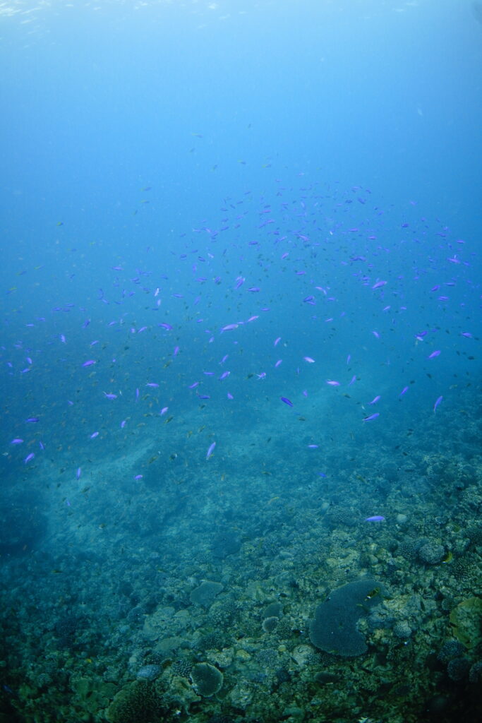 ラストはまさに“小魚天国”。スカシテンジクダイやキンメモドキ、キンギョハナダイ、ハナゴイが根の周りを埋め尽くし、まるで伊是名中の小魚を集めたような賑やかさでした。のんびりじっくり魚ウォッチングを楽しみつつ、クマノミ各種やミヤケテグリ、チンアナゴまで見どころ満載。水温24.6℃でロクハンツーピースでも寒さを感じず、快適な締めの1本になりました。
