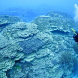 ダイバーチームは透明度20m、水温24℃。洞窟へ向かう途中で今シーズン初のコブシメに遭遇し、幸先のいい1本に。曇り空で洞窟内に光は差し込みませんでしたが、そのぶんマクロ探しをじっくり楽しみ、入口のバラの形をしたサンゴのオブジェやソリハシコモンエビ、キサンゴなど細かな見どころをのんびり観察できました。