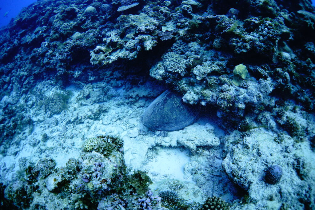 アオウミガメはクリーニングされていたり、休んでいたりとリラックスモードで、大きな個体が多く見応えあり。グルクンの群れも元気で、癒しと魚影どちらも楽しめる1本でした。