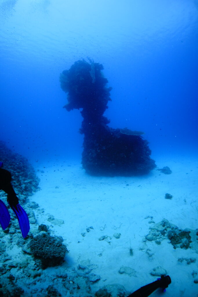 透明度20m。潮向きが逆で心配でしたが水中は問題なし。ただ、台風のうねりが強く、泳いでもなかなか進まないコンディションで自然のパワーを感じるダイビングに。