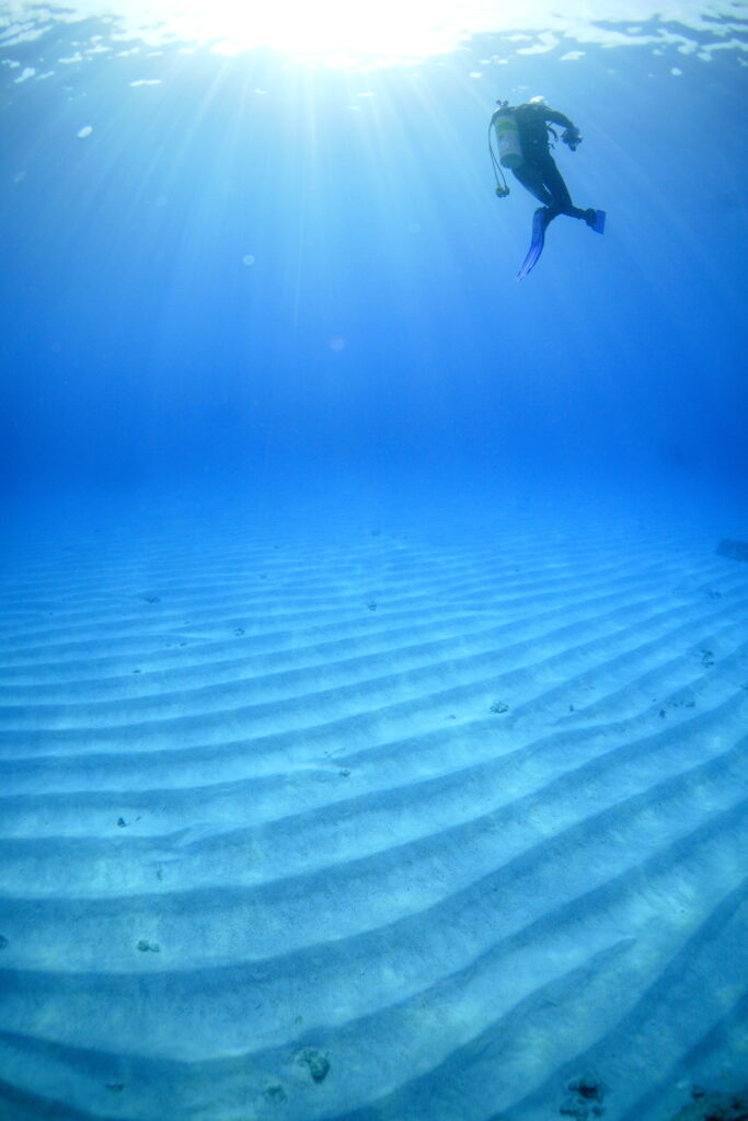 透明度25mからスタートし、エントリー直後は真っ白な砂地に美しい砂紋、そして太陽の光が差し込む最高の景色!思わず見とれるほどのコンディションでした。