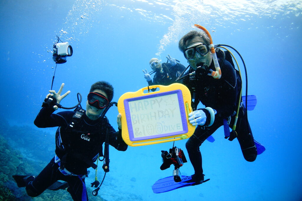 そして今回はお誕生日&100ダイブのW記念ダイブ! 水中でもお祝いムードで、思い出に残る1本になりました。本当におめでとうございます!
