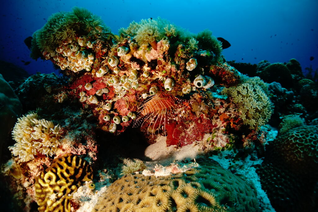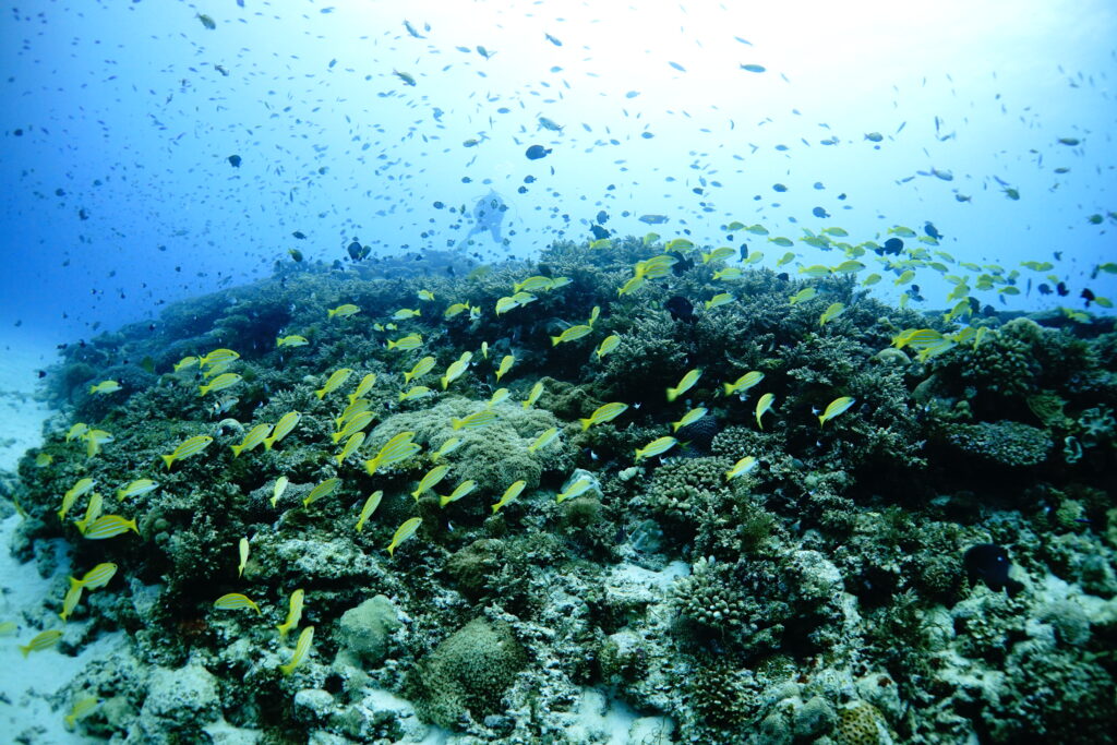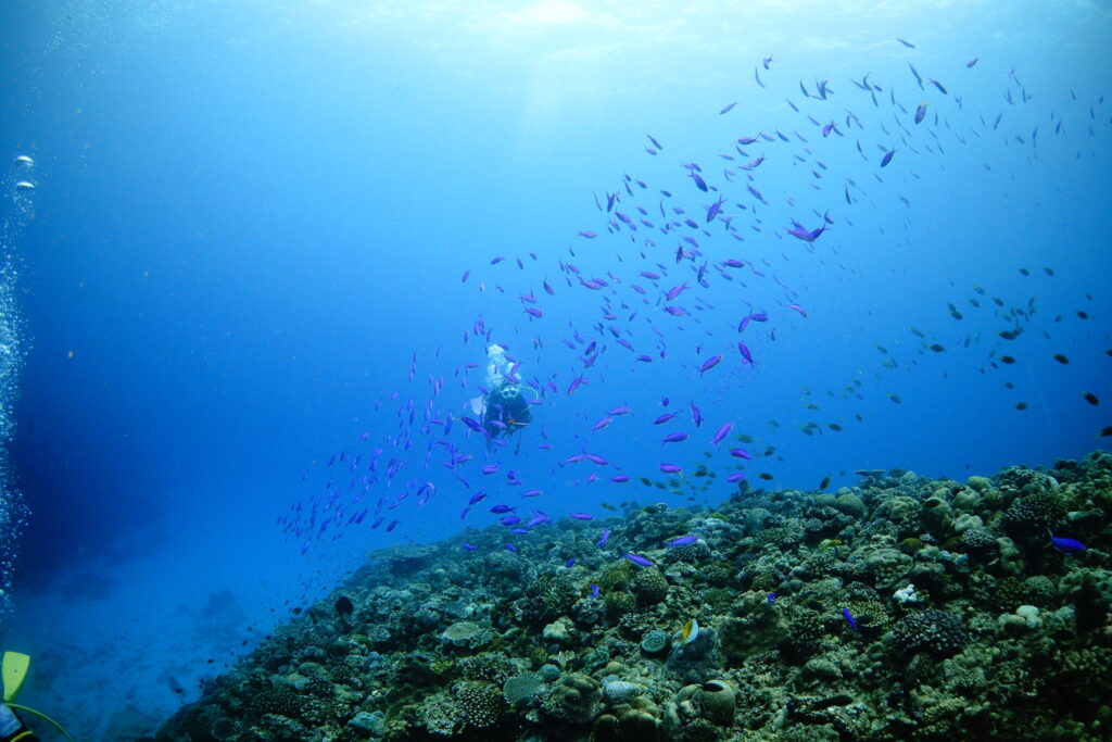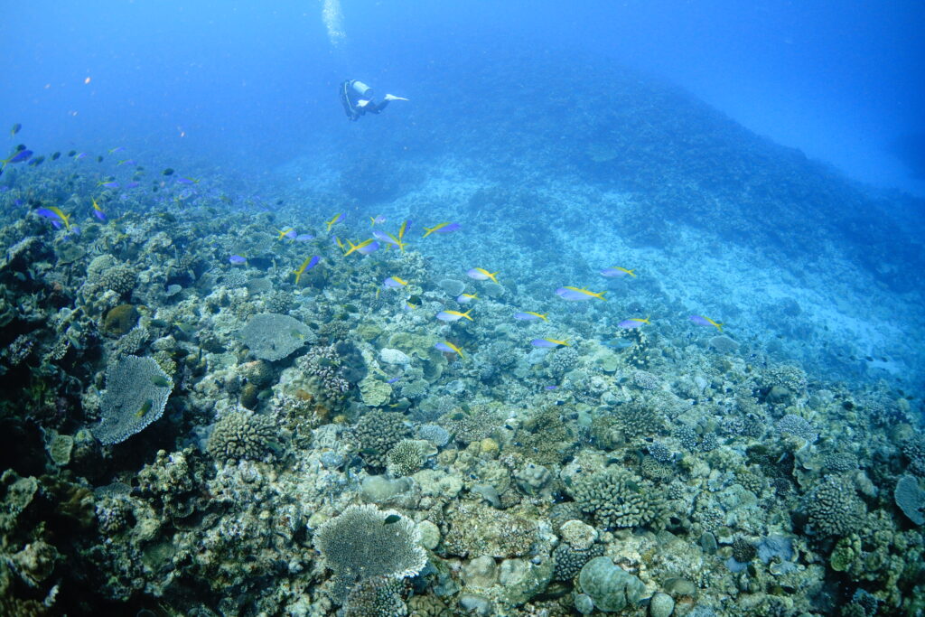 今日は曇り空、気温24℃。水温は22〜23℃と少しひんやりするコンディションでしたが、昨日の雨の影響による濁りがある中でも、魚影の濃さとサンゴの美しさをしっかり楽しめた1日でした。
