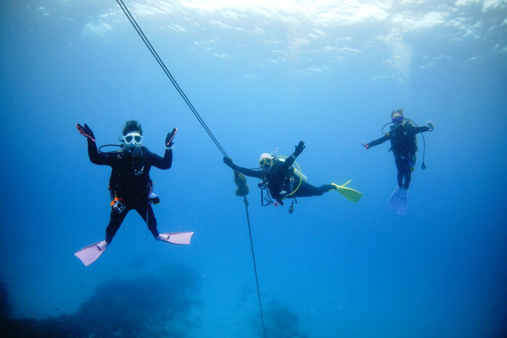 水温22℃、透明度20m。少し水温は下がりひんやり感はありましたが、その分透明度は回復して快適に。