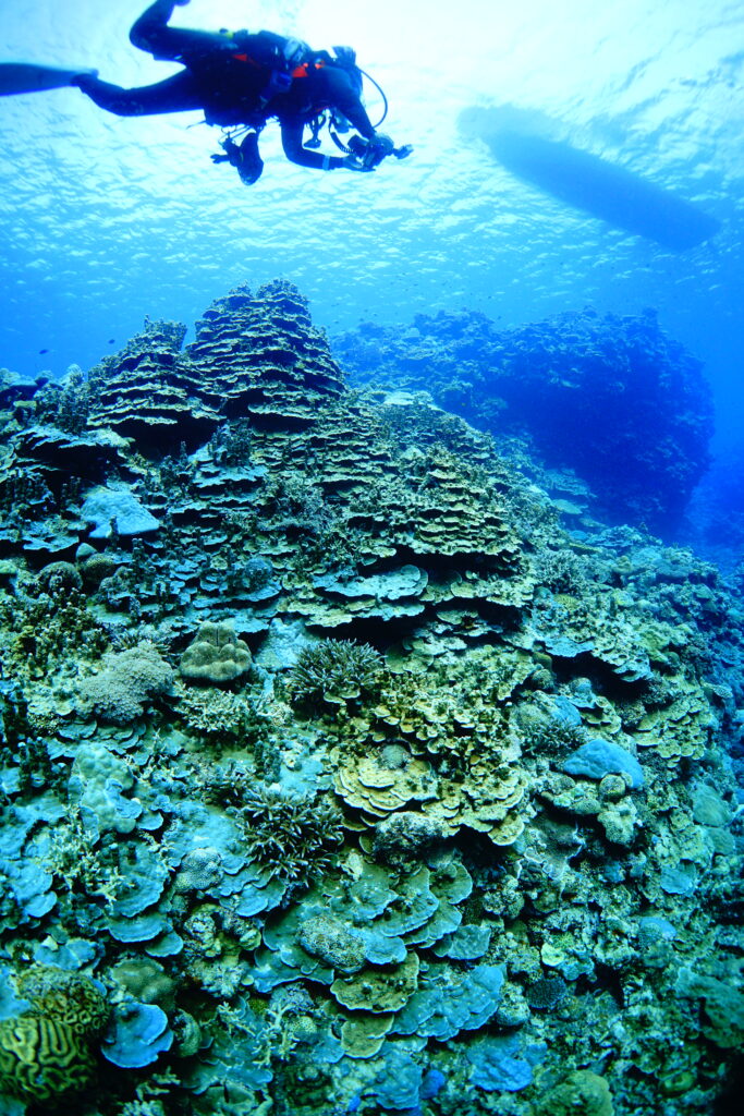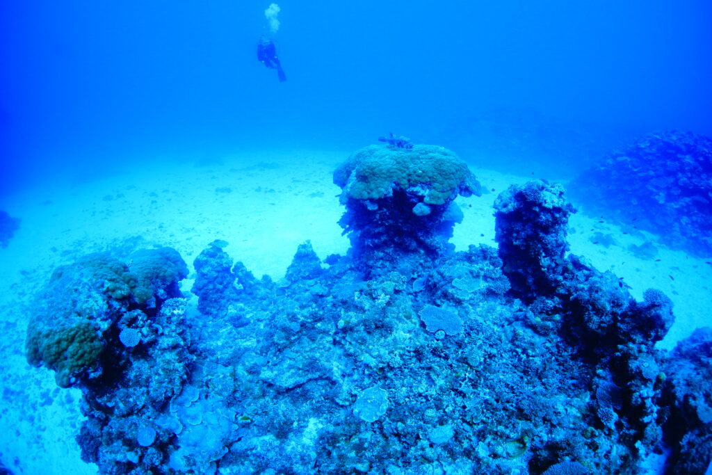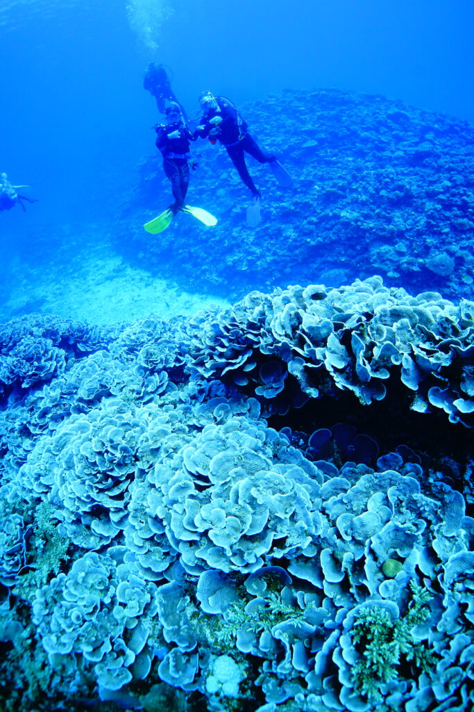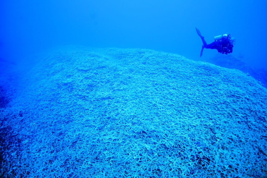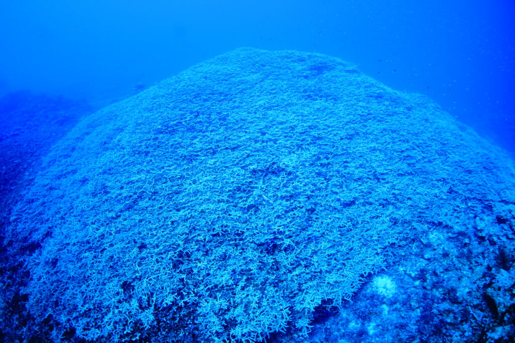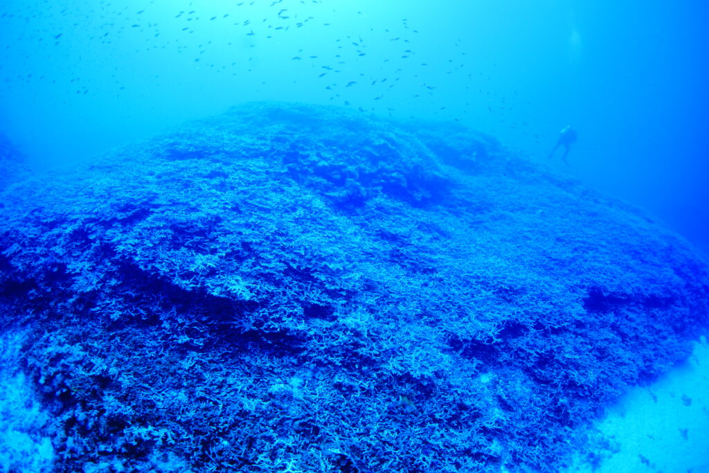 近づいてみると枝サンゴの大群生!20m〜25mの水深なのに一面の枝サンゴ!