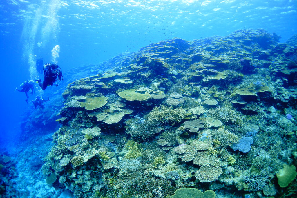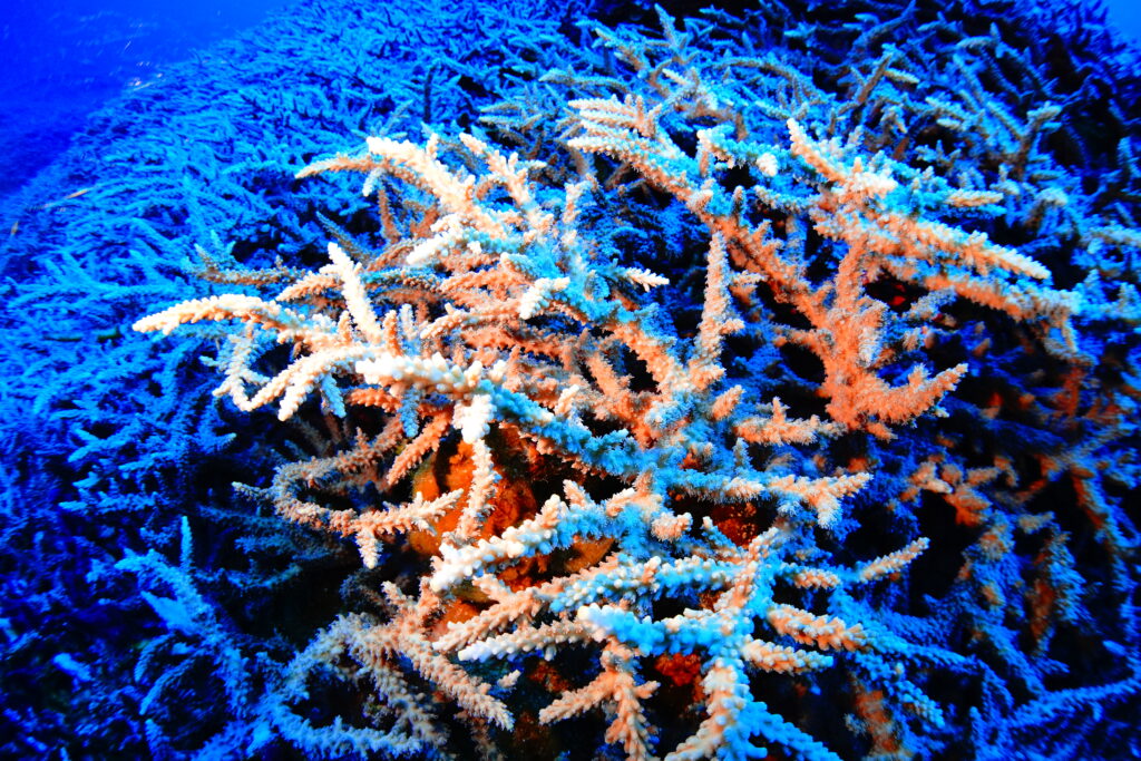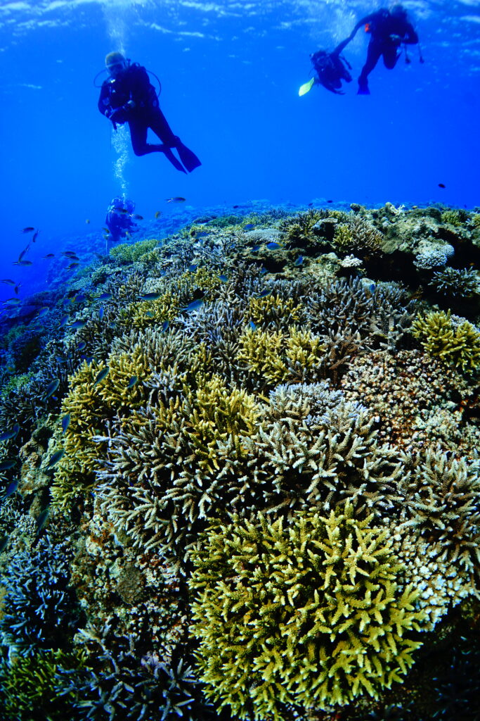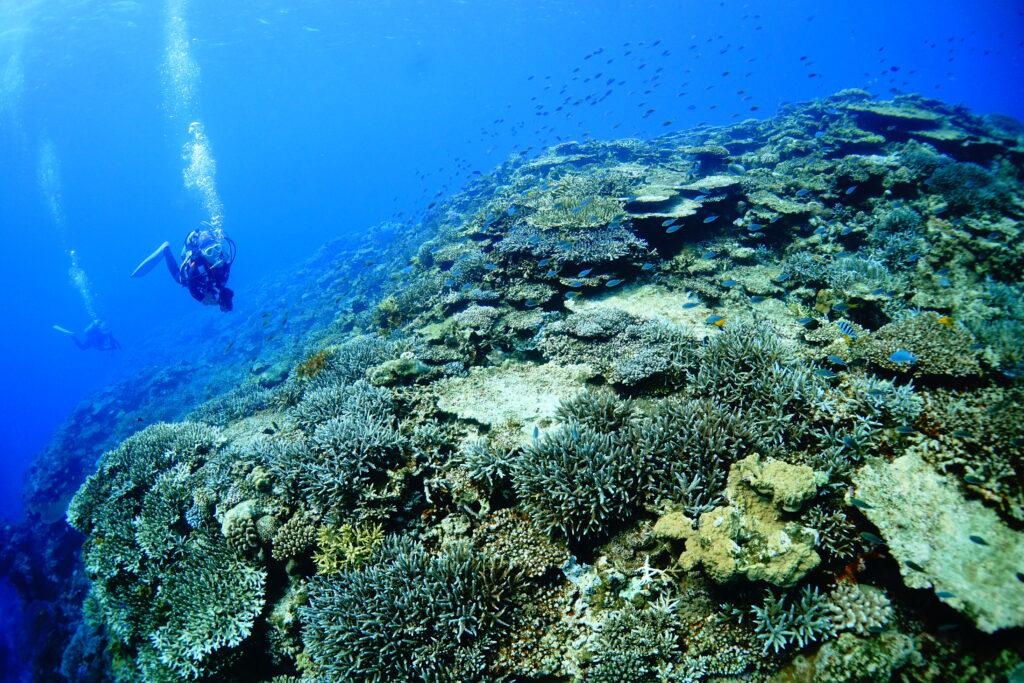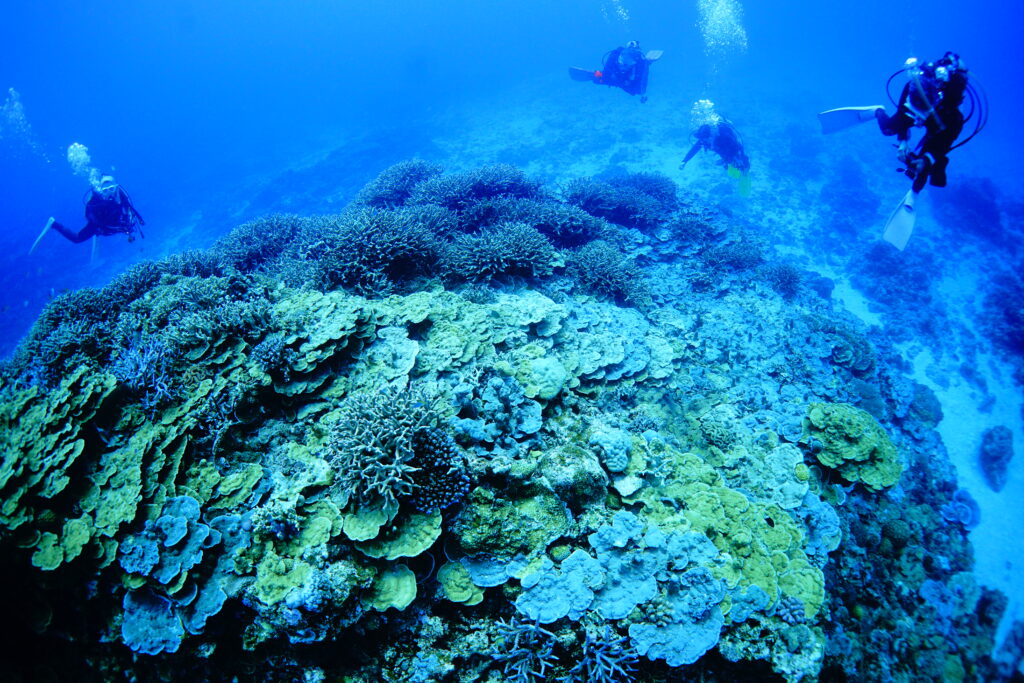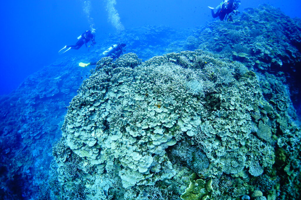 近づいてみると枝サンゴの大群生!20m〜25mの水深なのに一面の枝サンゴ!