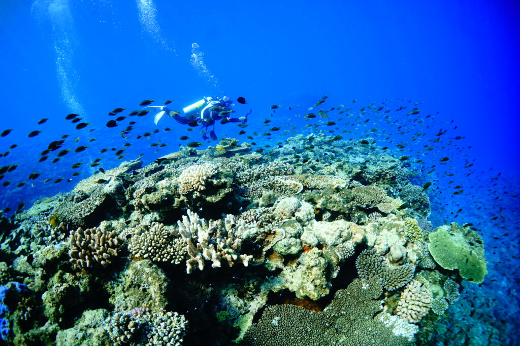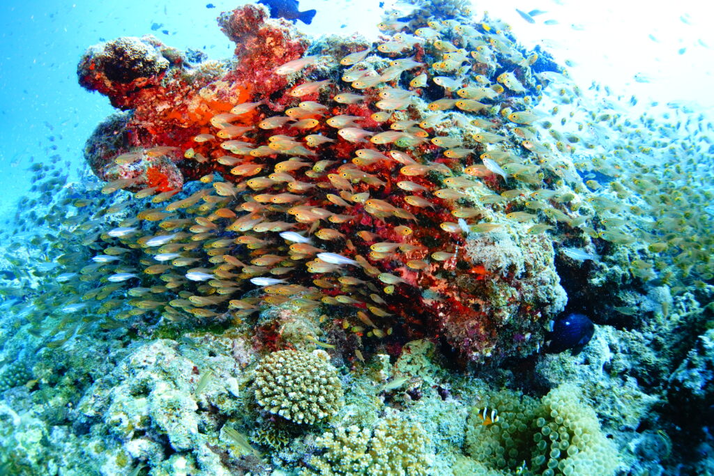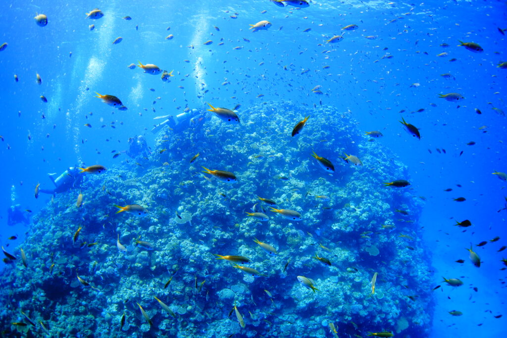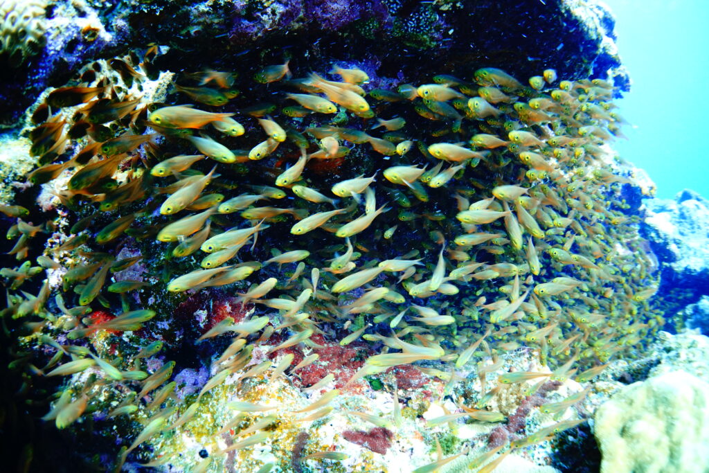 ウスコモンサンゴ、デバスズメダイ、ムチカラマツエビ、キホシスズメダイ、オキナワスズメダイ、アマミスズメダイ