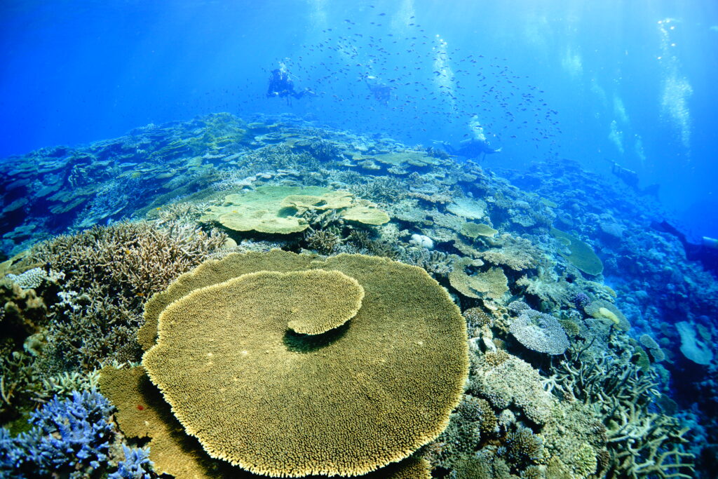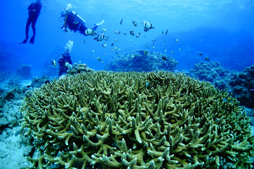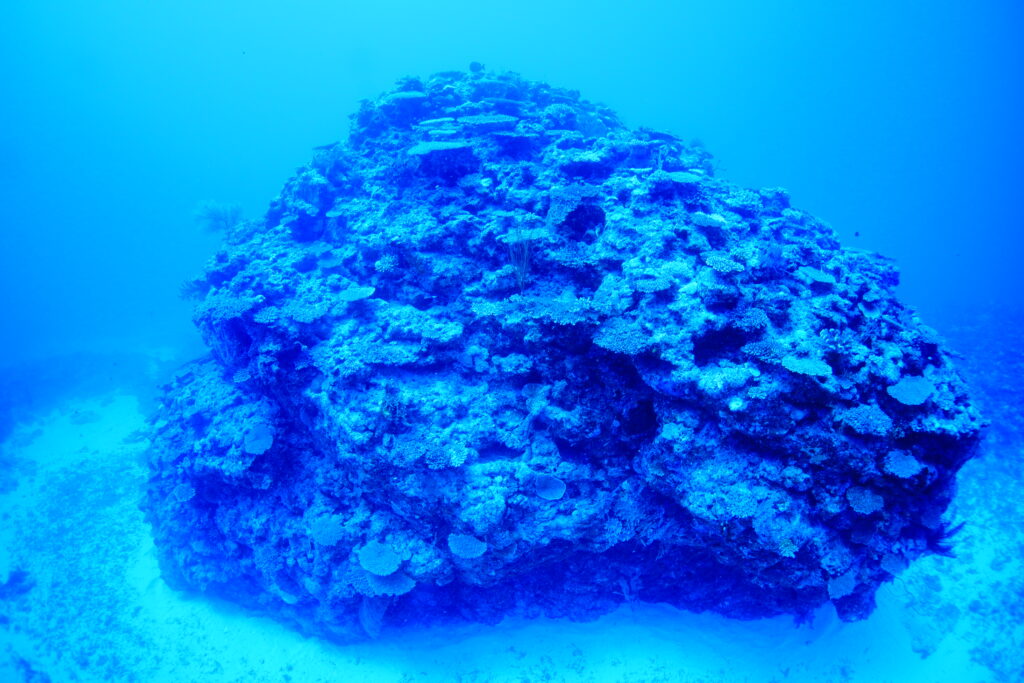 すっごい小さい規模でしたが、またヤセミドリイシの群生発見!その近くにダイナミックな岩が何個も!