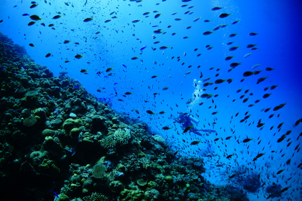 砂紋、グルクン、キンギョハナダイ、ヨスジフエダイ、フタスジリュウキュウスズメダイ、トウカムリ、キホシスズメダイ、オキナワスズメダイ、アオウミガメ、アオバスズメダイ
