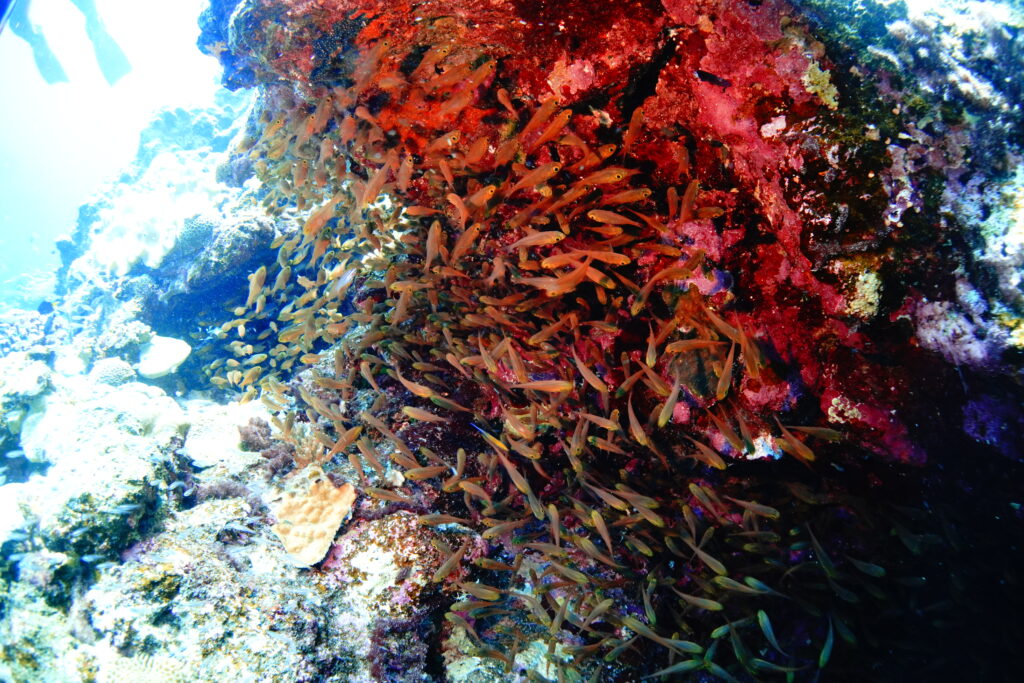 キホシスズメダイ、オキナワスズメダイ、キンメモドキ、ハナゴイ、キンギョハナダイ、クマノミ、ハタタテハゼ、コバンザメ、オヤビッチャ、ウメイロモドキ、グルクン
