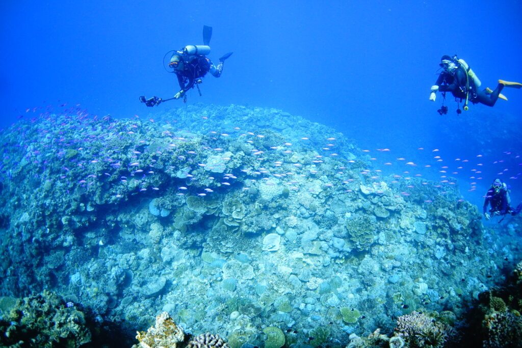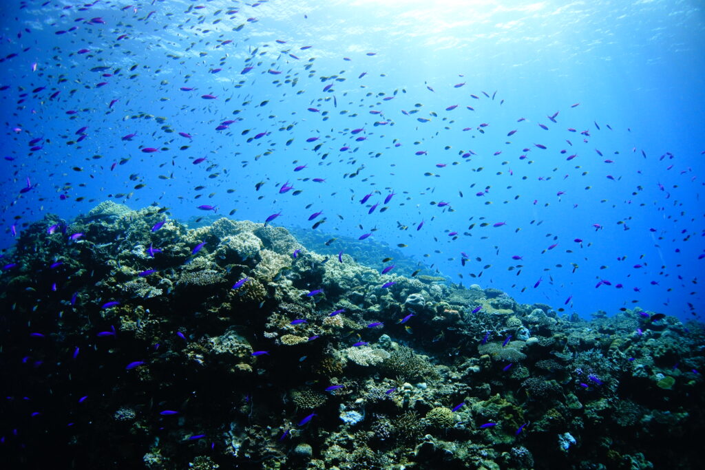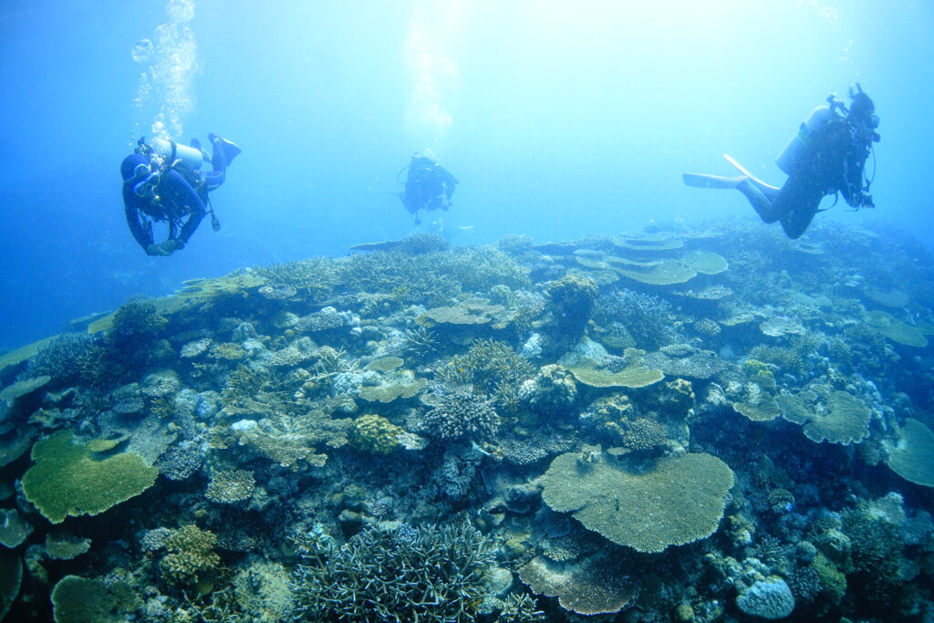 ヨコシマクロダイ、アカヒメジ、タマン、アオバスズメダイ、オキナワスズメダイ、ウメイロモドキ、アオウミガメ、キクメイシ、ハナゴイ、グルクン、カクレクマノミ、ヤセミドリイシ群生