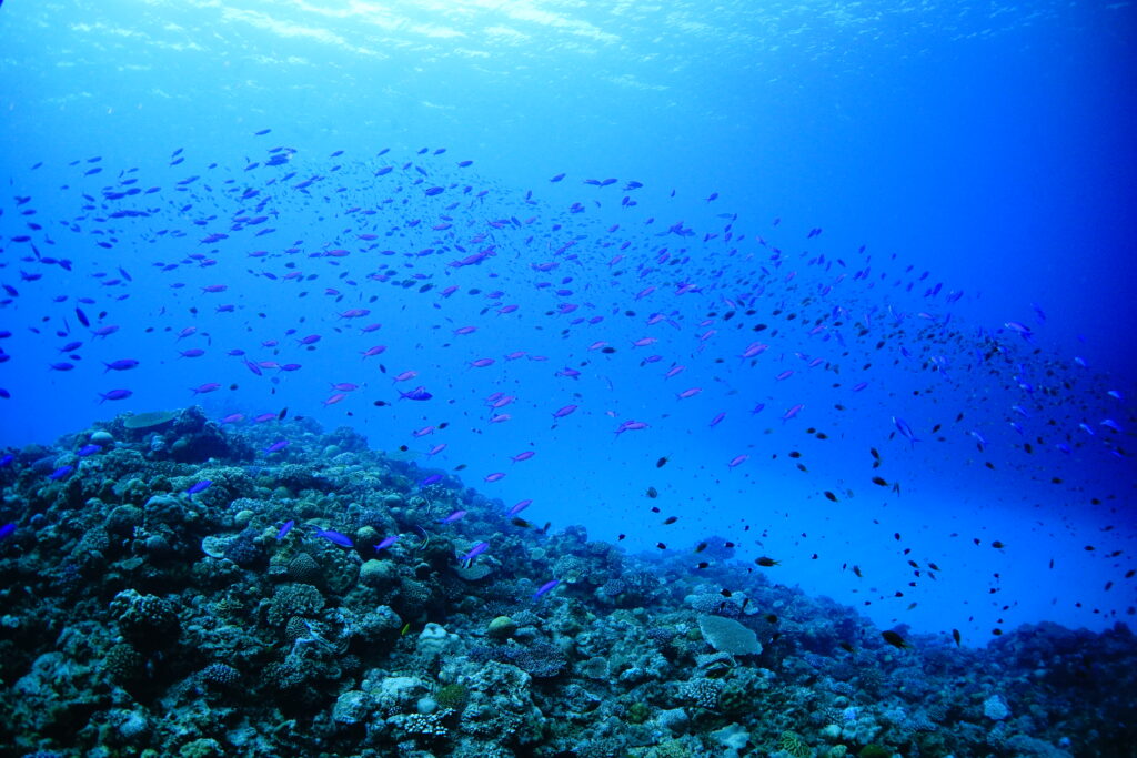 ネムリブカ、アカヒメジ、ハナゴイ。アオウミガメ、モヨウフグ、カクレクマノミ、グルクン、ウメイロモドキ、ヤセミドリイシ