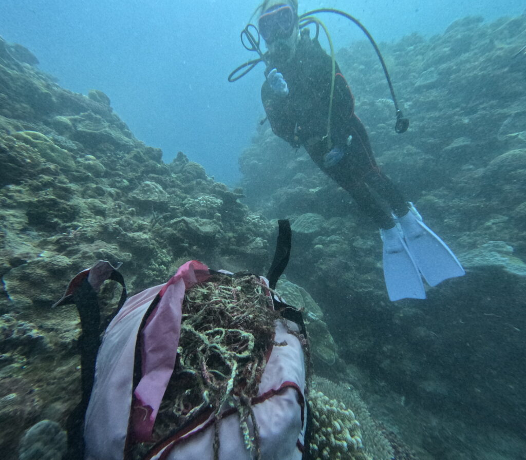 みんな黙々と自分の担当の漁網を剥がして、あっという間にメッシュバックいっぱいに漁網が回収できました\(^o^)/
