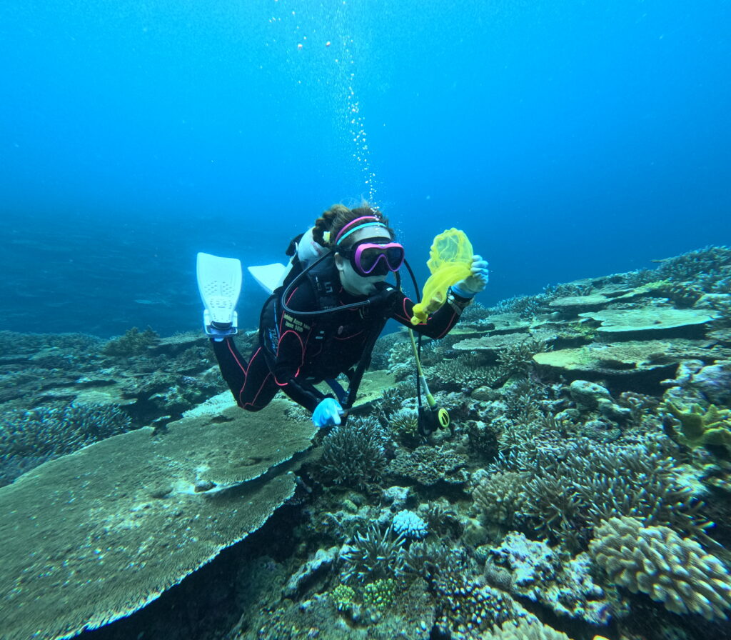 2本目は海中清掃の次にやろうと思っていた、サンゴの天敵のレイシガイ駆除体験もやってもらいました!